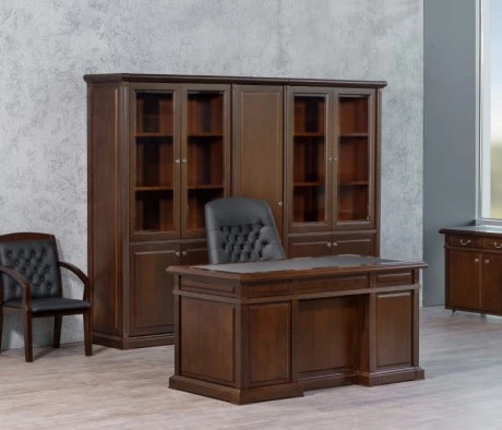 Стояла задача оборудовать два помещения заказчика в классическом стиле в очень короткий срок, создав при этом респектабельное функциональное пространство. Обязательным условием заказчика было стилистическое и цветовое соответствие мебели кабинета руководителя и переговорной.