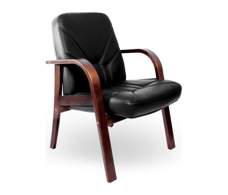 Деревянные подлокотники для повышения комфортабельности имеют мягкие накладки из экокожи, человеку будет комфортно ожидать приема или участвовать в конференции. Продольная строчка служит не только декоративным элементом, но и обеспечивает удобную посадку, не давая телу менять положение.